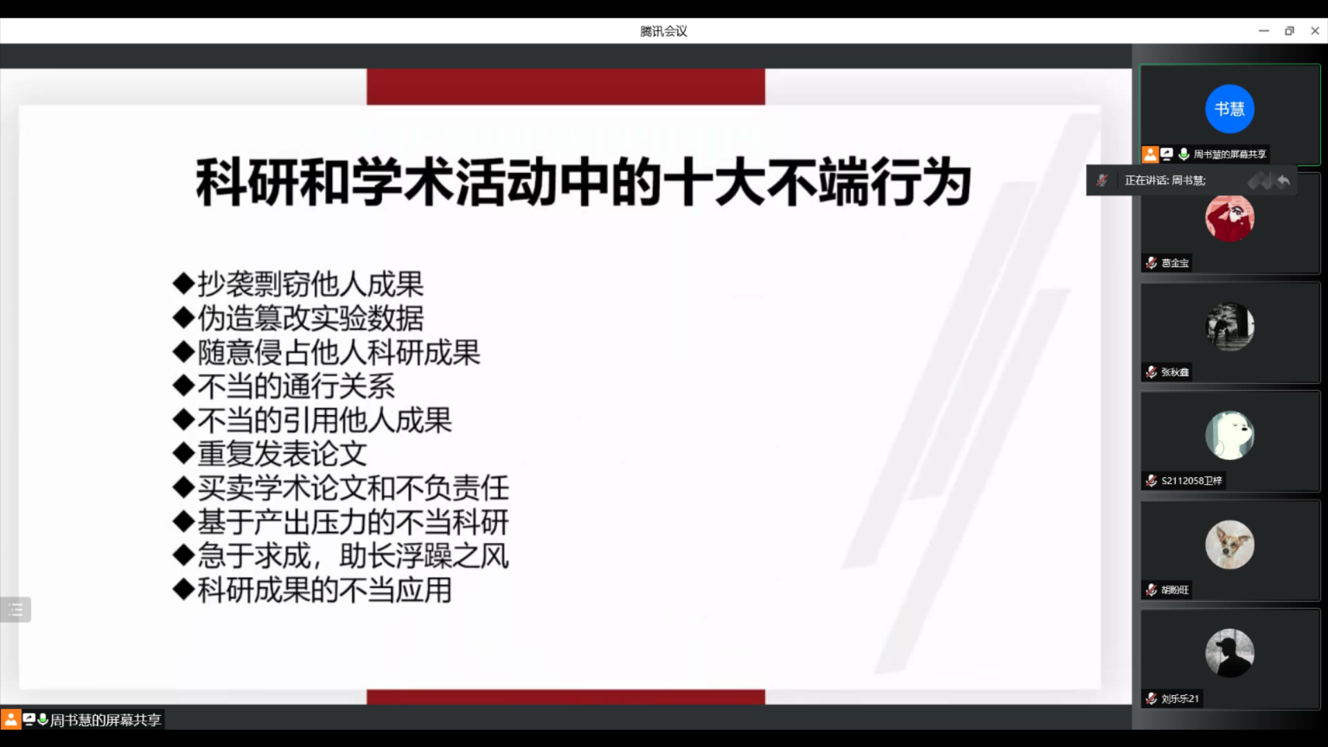 为深入贯彻习近平总书记在科学家座谈会上的重要讲话精神,提升研究生学术道德水平,优化科研、学术环境。4月21日,365公司开展“科学道德与学风建设”线上主题班会。