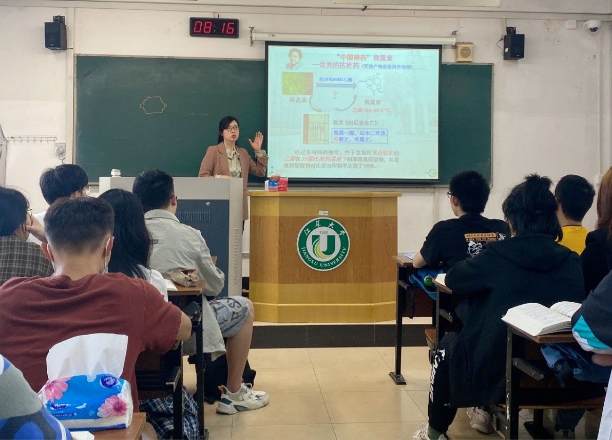 首先,张老师介绍了“醚”的结构、分类及命名以及物理性质,通过其性质特点启发学生思考“醚”的应用范围。张老师基于有机化学“醚”的知识点,以青蒿素为例,关联我国有机化学研究成果以及取得成就,鼓励学生勇闯科技前沿,不畏艰难,极大地增强了学生们的科技自信和文化自信。该课程帮助学生树立科学的世界观和方法论,灵活运用唯物的、辩证的思维方法,解决化学领域中的具体问题。