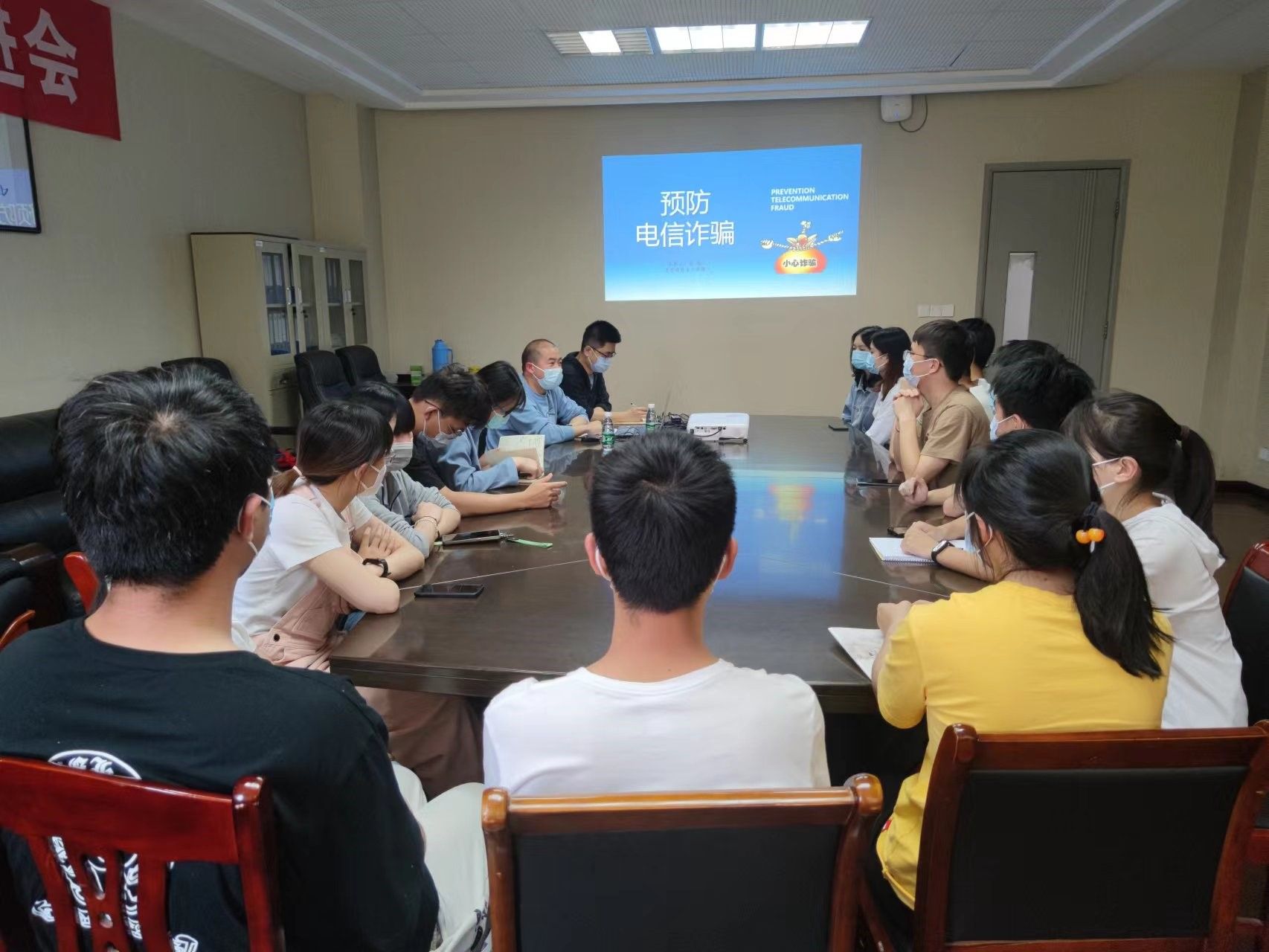 5月16日,365公司在化工楼214会议室开展研究生安全教育,研工部徐航老师为英国365上市公司研究生做了防范网络电信诈骗专题讲座,讲座由辅导员夏磊老师主持,各课题组负责的同学参加。