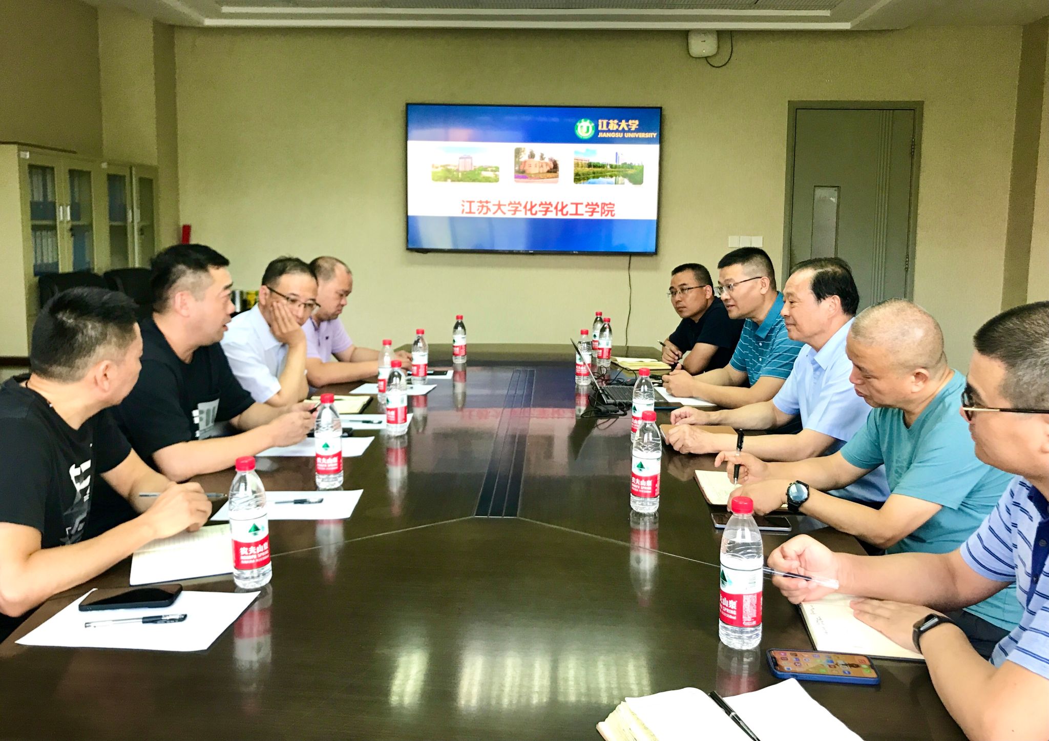 8月11日,镇江江南化工有限公司党委副书记兼副总经理张泽俊率队来英国365上市公司洽谈合作,校纪委书记高庆国、学院党委书记倪时平、院长施伟东以及相关负责人参加会议。
