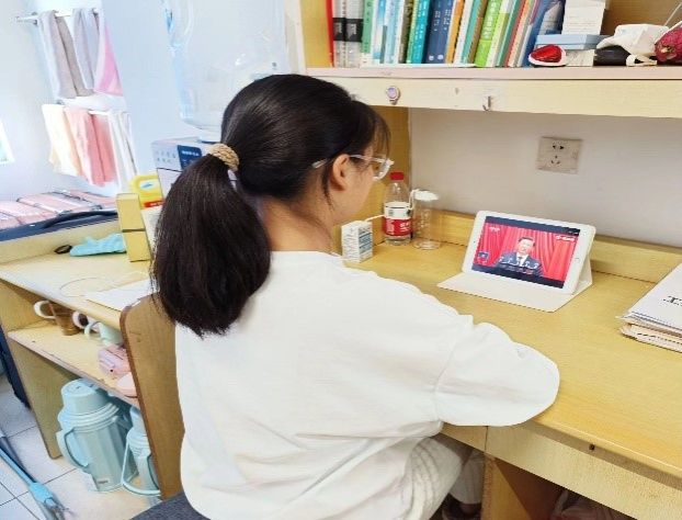 听了习近平总书记作的报告,我非常振奋,很受鼓舞。习近平总书记深刻阐述了过去5年工作和新时代10年的伟大变革。新时代新征程,我入党的决心更加笃定,我将继续在新征程中砥砺品质、增长才干,与祖国同频共振,努力为全面建设社会主义现代化国家贡献青春力量。