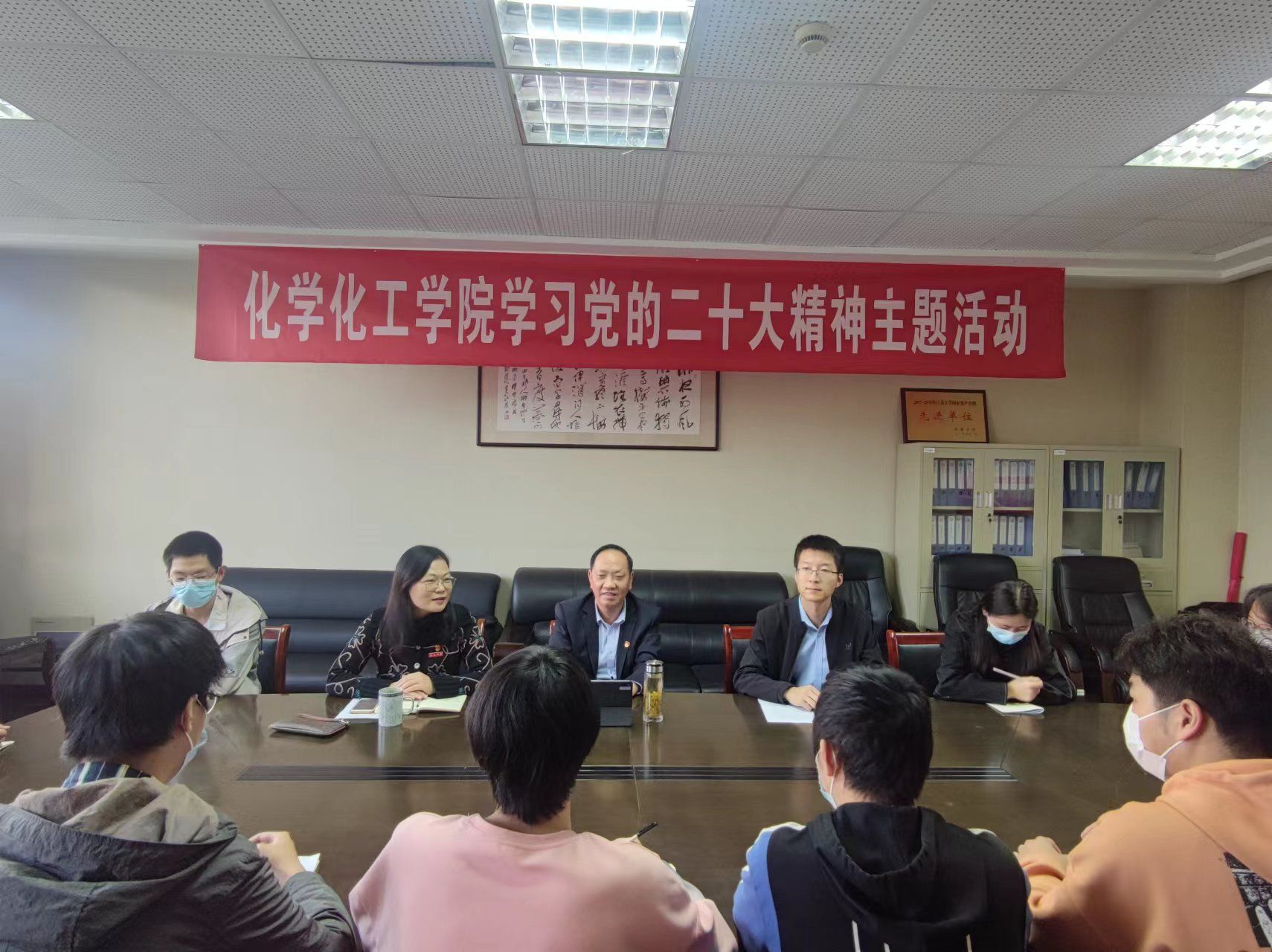 11月2日,副校长赵玉涛来到365公司,参加联系的应化2001班“学习党的二十大精神、成才报国”主题活动。院党委副书记庄蕾、辅导员齐廉文和全体同学参加。