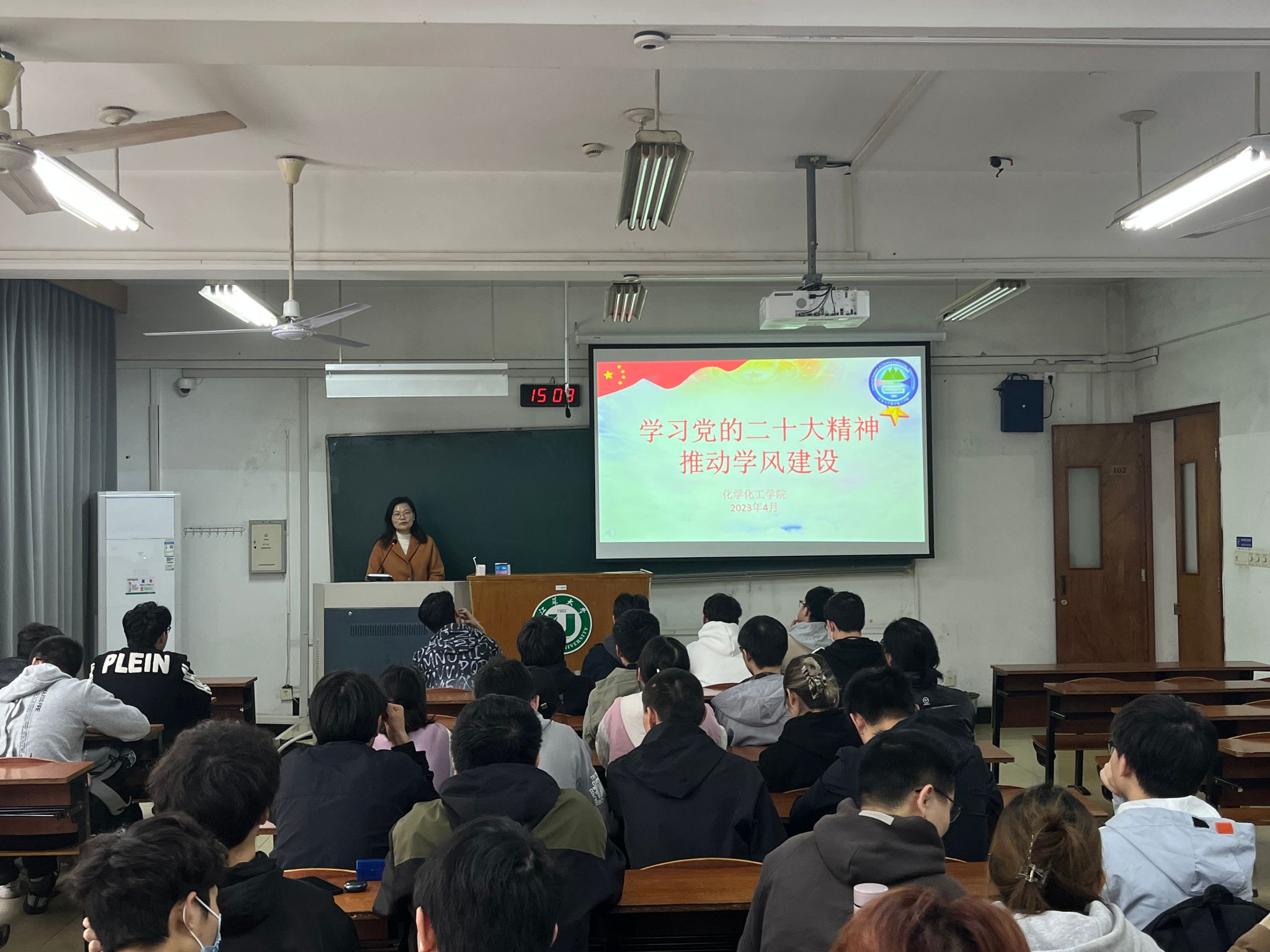 班会上,通过观看最美大学生、大学生年度人物等先进事迹视频,邀请本专业学习、科研成绩突出的同学,开展朋辈交流,为大家分享学习经验,通过选树典型、榜样,引导同学们坚定理想信念,争当德智体美劳全面发展的新时代好青年。辅导员来桂玉就同学们提出的创新创业实践学分认定、成长困感及升学等问题进行指导和交流,引导同学们深刻领会青年的初心与使命、责任与担当。庄蕾副书记强调,学院师生深入学习贯彻党的二十大精神,聚焦学风建设,促进同学们全面发展,学生干部和先进积极分子更应该做好表率,把学习贯彻党的二十大精神切实转化为刻苦学习的动力,努力成为国家和社会的有用之才,为实现中国式现代化建设贡献力量。
