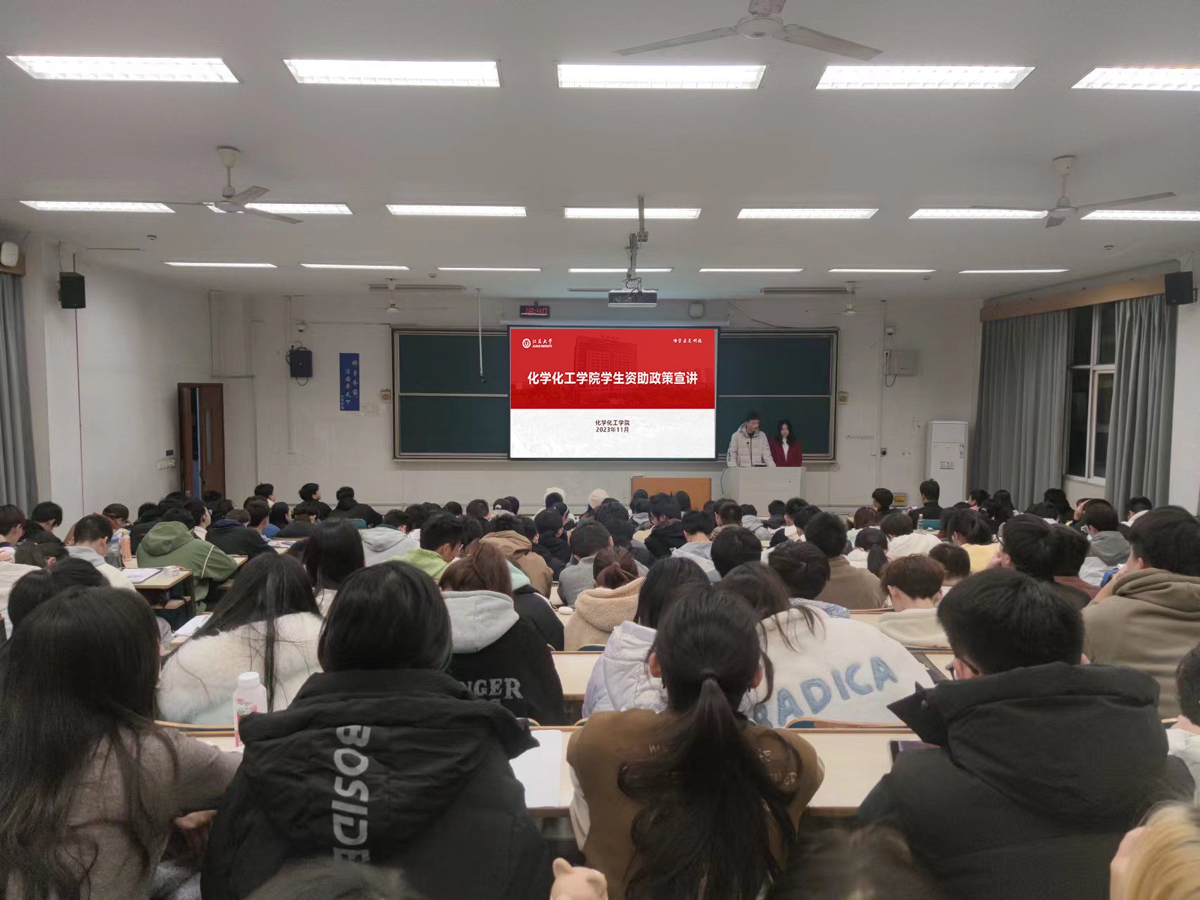宣讲过程中,侯嘉诚、武江函分别对国家奖(助)学金、国家助学贷款、服兵役教育资助等高校学生资助政策、申请条件、申请流程、征信知识等内容进行了全面解读,向同学们系统而全面地介绍了“奖、助、勤、贷、减、免、补”资助育人体系。通过资助政策的讲解,使同学们系统地了解了国家资助的相关政策和文件,对获取国家资助的各项程序、流程有了更深的认识。同时也培养了学生的诚信意识、感恩意识,以及自信、自立、自强的优秀品质。