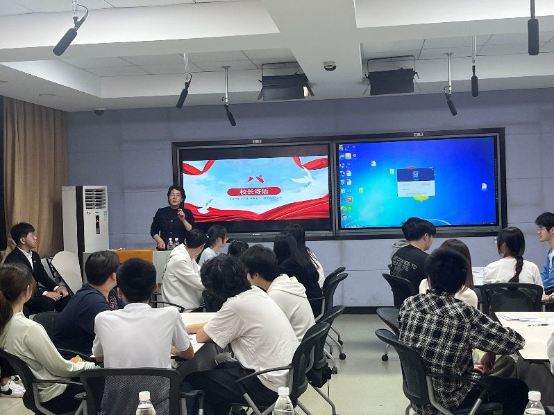 校长邢卫红从化工专业的优势、化工行业的发展前景及专业学习的自信等方面带领同学们深入领悟化工专业领域知识,她通过详实的行业案例为同学们生动解答了“前途”与“‘钱’途”的疑问,并强调了化工在国家战略中的重要意义。邢校长寄语广大同学要在今后的学习中坚定化工专业自信,掌握扎实理论知识,主动服务大局,努力为强国建设、民族复兴伟业贡献化工力量。