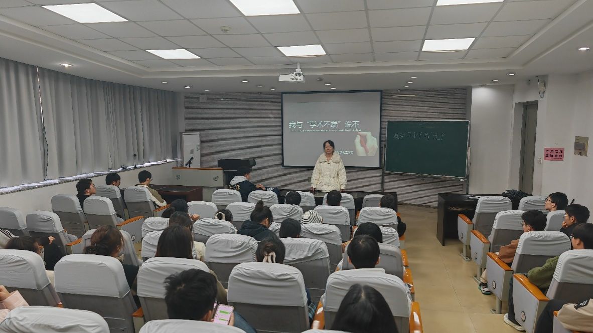 为加强研究生学术诚信意识营造良好的学术氛围。11月21日,365公司在化工楼212报告厅举办了“我与学术不端说不”活动。活动由学院研究生辅导员顾清晨主持,2024级研究生参加此次活动。