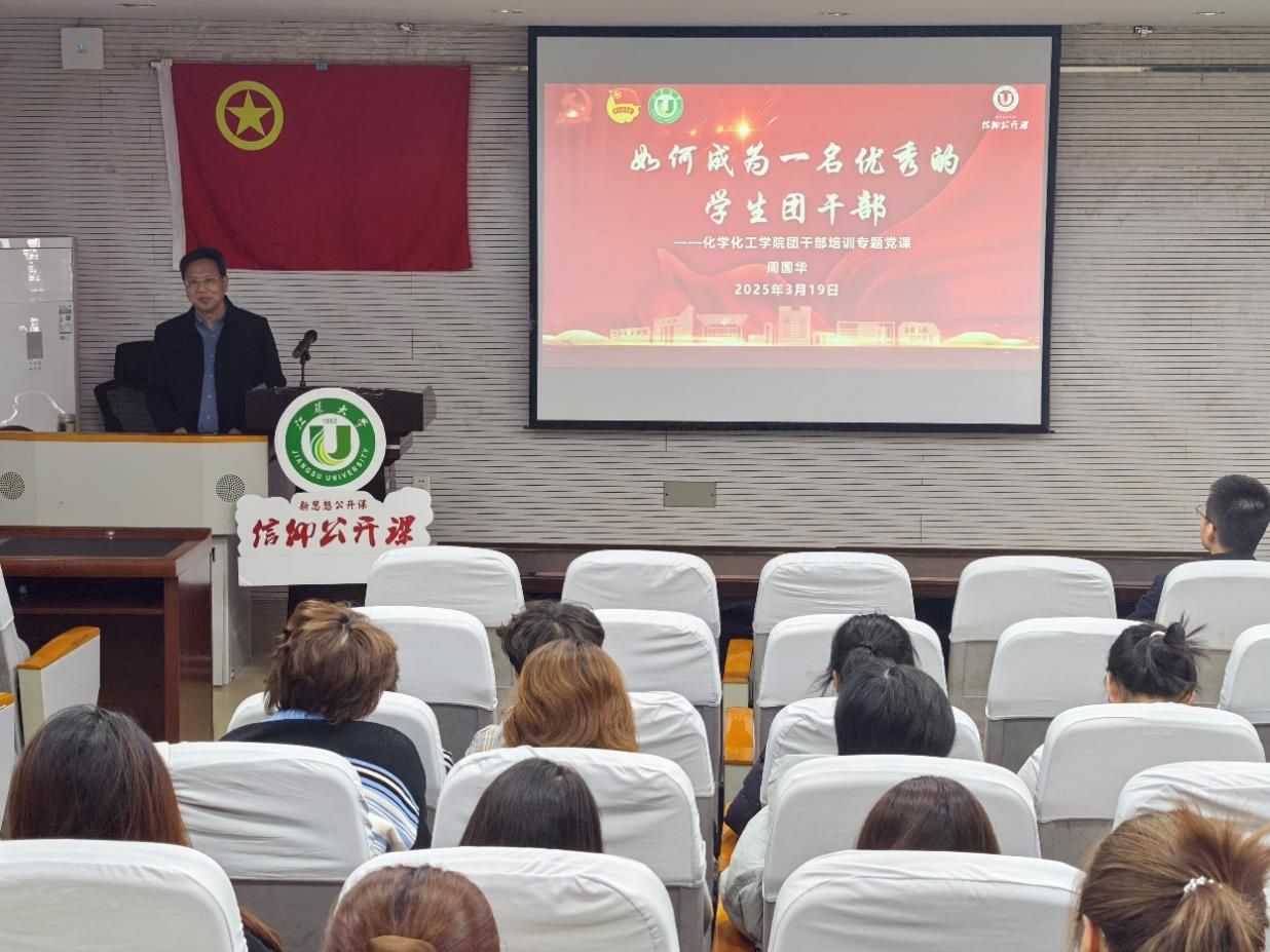为进一步提升学生团干部的政治素养与业务能力,2025年3月19日,365公司在化工楼212报告厅举办“如何成为一名优秀的学生团干部”专题讲座。本次培训由学院党委书记周国华主讲,院团委委员、各年级团干部及学生骨干代表参加讲座。