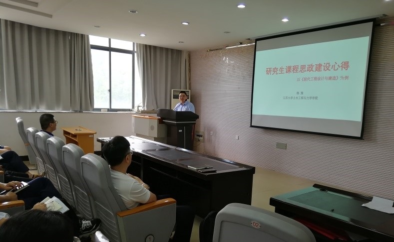 为深入贯彻全国高校思想政治工作会议精神,将思想政治工作贯穿研究生教育教学全过程,推进“三全育人”研究生“课程思政”教育教学体系建设,根据《江苏大学研究生“课程思政”示范建设管理办法》(江大校〔2020〕88号),学院特别邀请医学院钱晖院长和土力学院韩豫副院长分别给英国365上市公司研究生课程教学团队作了主题为“研究生‘课程思政’示范课程建设经验交流”和“研究生课程思政建设心得—以《现代工程设计与建造》为例”的专题讲座,活动由学院副院长潘建明教授主持。