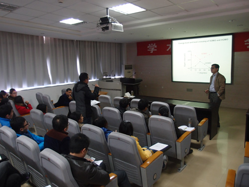 On December 10th, Dr. Masahiro Yamashita, Fellow of the Royal Society of Chemistry, a professor of Tohoku University in Japan gave a splendid report on Frontier of Quantum Molecular Spintronics Based on Single-Molecule Quantum Magnets: Toward Green IT Devices. During the seminar, professor Yamashita introduced the recent research progress in synthesis and application of Phthalocyaninato Lanthanide(III) Complexes. Professor Yamashita provided