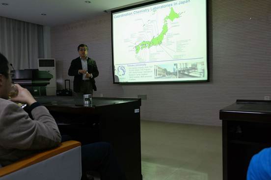 Prof. M. Yamashita’s presentation entitled "Nano-Wire Pd(III) with Strong Electron Correlation: Phase Transitions and Optical Properties". He mainly focused on the properties of nano-Wire Pd(III), and briefly stated what is scientific research and how to do it. Prof. M. Yamashita’s report was understandable and full of humor, and the attendees benefited a lot from the presentation.