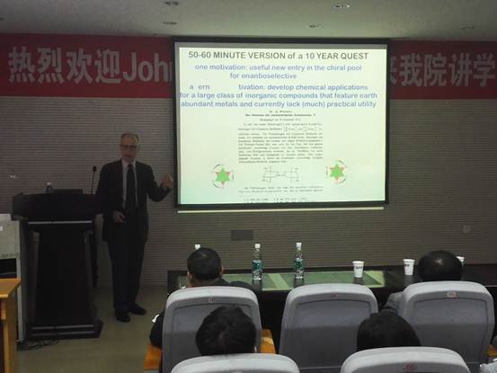 Prof. Gladysz’s report entitled “Werner Complexes: A New Class of Chiral Hydrogen Bond Donor Catalysts for Enantioselective Organic Reactions”. After the report, he gave a brief guideline of studying abroad. The attendees benefited a lot from the presentation.