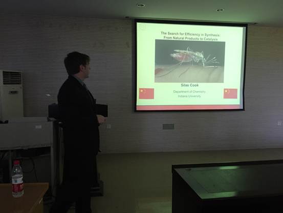 Prof. Cook’s report entitled “The Search for Efficiency in Synthesis: From Natural Products to Catalysis”. The report described their recent efforts to develop an affordable synthesis of the antimalarial drug artemisinin. Intriguing reactivity in palladium catalysis discovered a route to the englerins, a family of anti-renal cancer natural products was also highlighted. After the report, he briefly communicated with the faculties and students, who benefited a lot from the presentation.