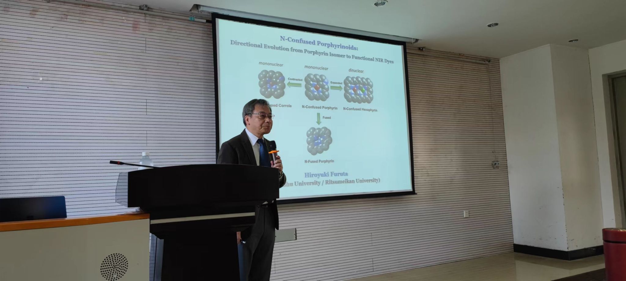 On 23rd October morning, Dr. Hiroyuki Fruruta gave an academic Lecture in the lecture hall, and the title was N-confused Porphyrinoids: Directional Evolution from Porphyrin Isomer to Functional NIR Dyes.The lecture focused on the important role of N-confused porphyrinoids in the development of NIR-SWIR-light-responsive agents in the application of bioimaging and therapy. Chinese and foreign graduate students participated in the lecture. They learned the important role of N-confused porphyrinoids in the development of NIR-SWIR-light-responsive agents in the application of bioimaging and therapy from this lecture.
