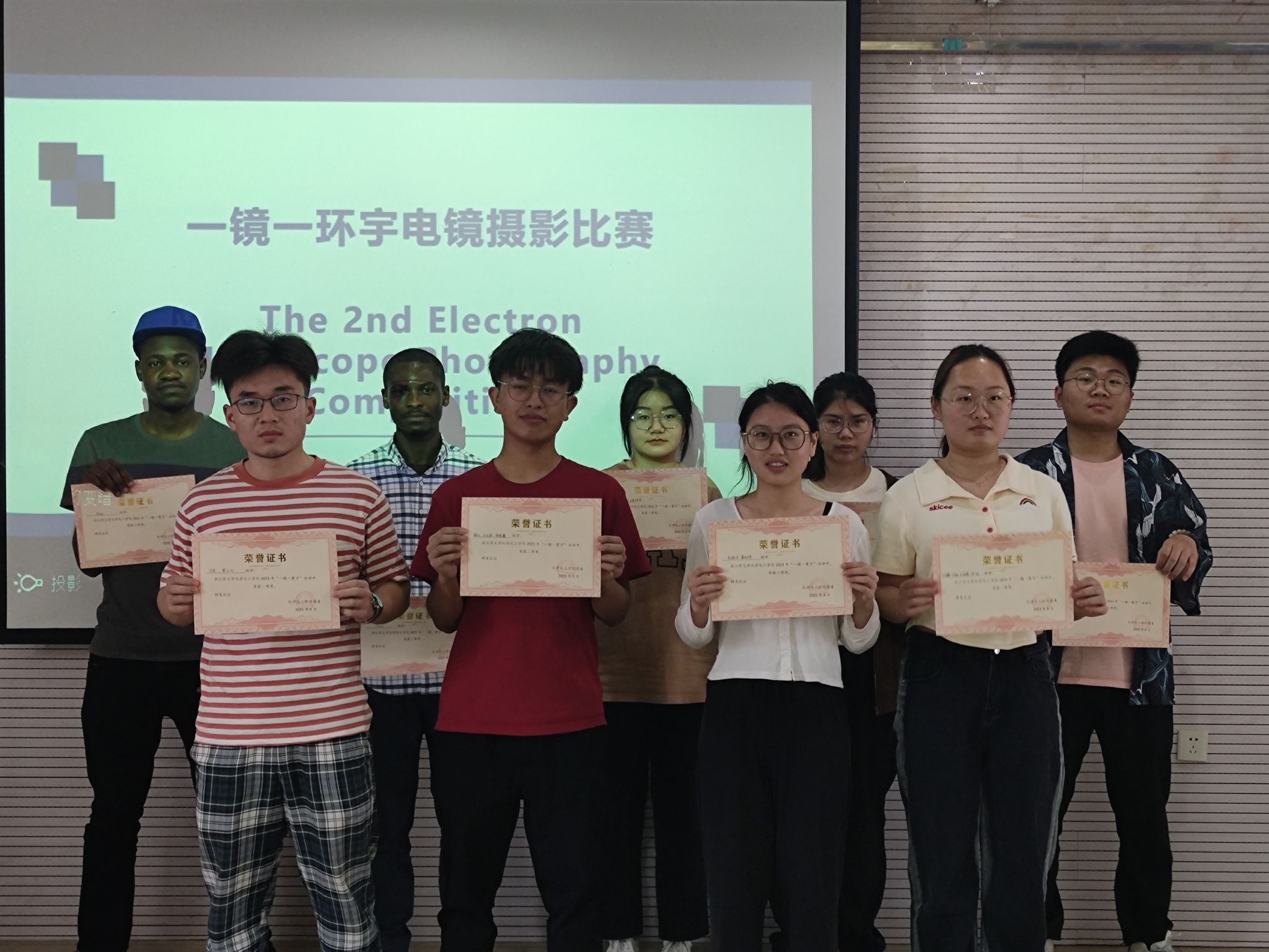 We collected 56 electron Microscope photography works including 21 works from the overseas students. We selected 30% outstanding works that entered the finals. We invited the teacher Yang Wenshu as jury in the final. In the final, Frank Peprah Addai won the second prize; and Brian Musikavanhu won the third prize. The students learned a lot knowledge about the electron microscopy from this competition.