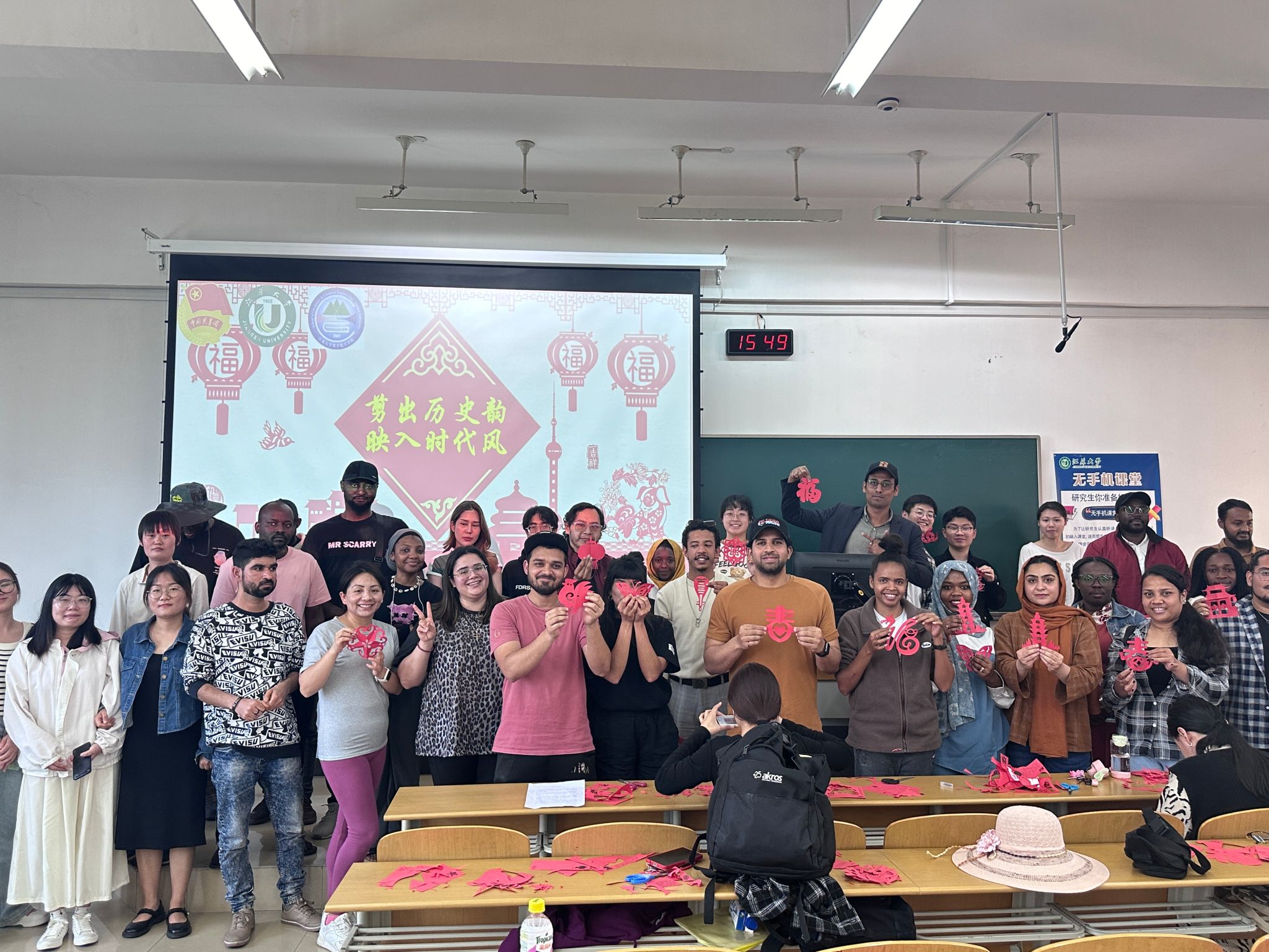 On May 8, 2024, the school of Chemistry and Chemical Engineering held the paper-cutting activity in 306, graduate school building. There are more than 60 students participated in the activity, and including 35 overseas students.