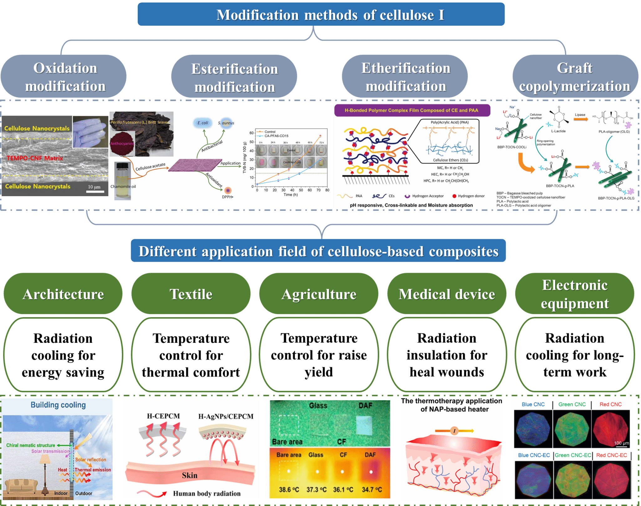 以纤维素为主要组分的生物质资源因其来源广泛和固碳潜力巨大的显著优势,已被证实可以有效减轻环境污染与碳排放。热管理技术因其无能量输入与无污染输出的特点被广泛应用在多个领域,为解决能源危机提供了调控新策略。然而,目前几乎没有相应的综述考虑到这类复合材料在可再生方面起到的积极作用。尽管前期已有综述分别对生物质资源的处理和红外热管理材料进行总结,但仍需对二者结合的复合材料进行一个完整全面的归纳。