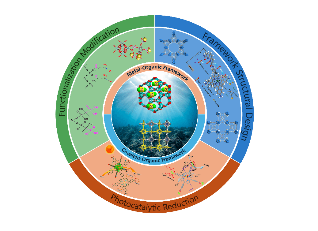 该综述系统总结了近年来卟啉基金属有机框架(MOFs)与共价有机框架(COFs)材料在铀提取方面的研究进展,深入分析了材料的结构设计、吸附机制、光催化性能及其在复杂环境下的选择性和稳定性等关键科学问题。文章指出,卟啉作为天然大环配体,不仅具备优异的金属络合能力和可调光电性能,还能通过与Zr、Fe、Ni等金属节点或官能化配体的协同作用,显著提升材料在极低浓度铀存在下的吸附与还原能力。