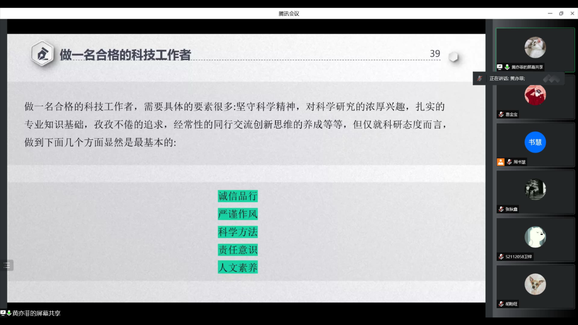 为深入贯彻习近平总书记在科学家座谈会上的重要讲话精神,提升研究生学术道德水平,优化科研、学术环境。4月21日,365公司开展“科学道德与学风建设”线上主题班会。
