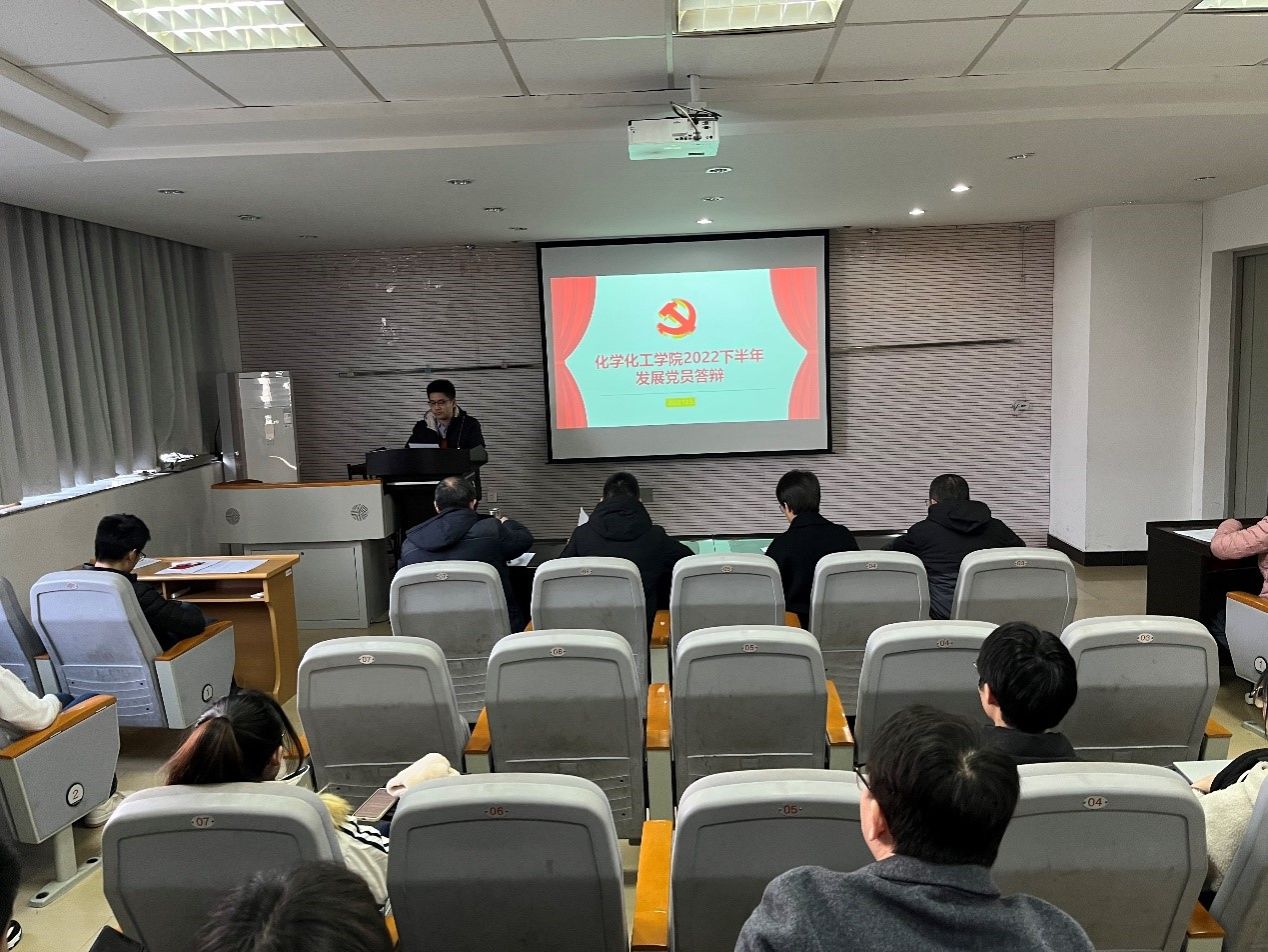 化学与应化专业本科生党支部书记夏磊老师介绍答辩会的流程后,答辩人员依次上台进行答辩。大家汇报了自己被列为入党积极分子以来的思想、学习和工作情况,全面剖析了自身的优缺点,并就党的知识、入党动机、政治思想、现实表现及入党后的打算等提问作了现场答辩。答辩中,他们表现出了较高的综合素质和较好的口头表达能力,自我剖析及问题答辩也具有一定的思想理论水平。展现出365公司学子的风采和精神面貌,也让评委对各位发展对象有了较为深入地了解。