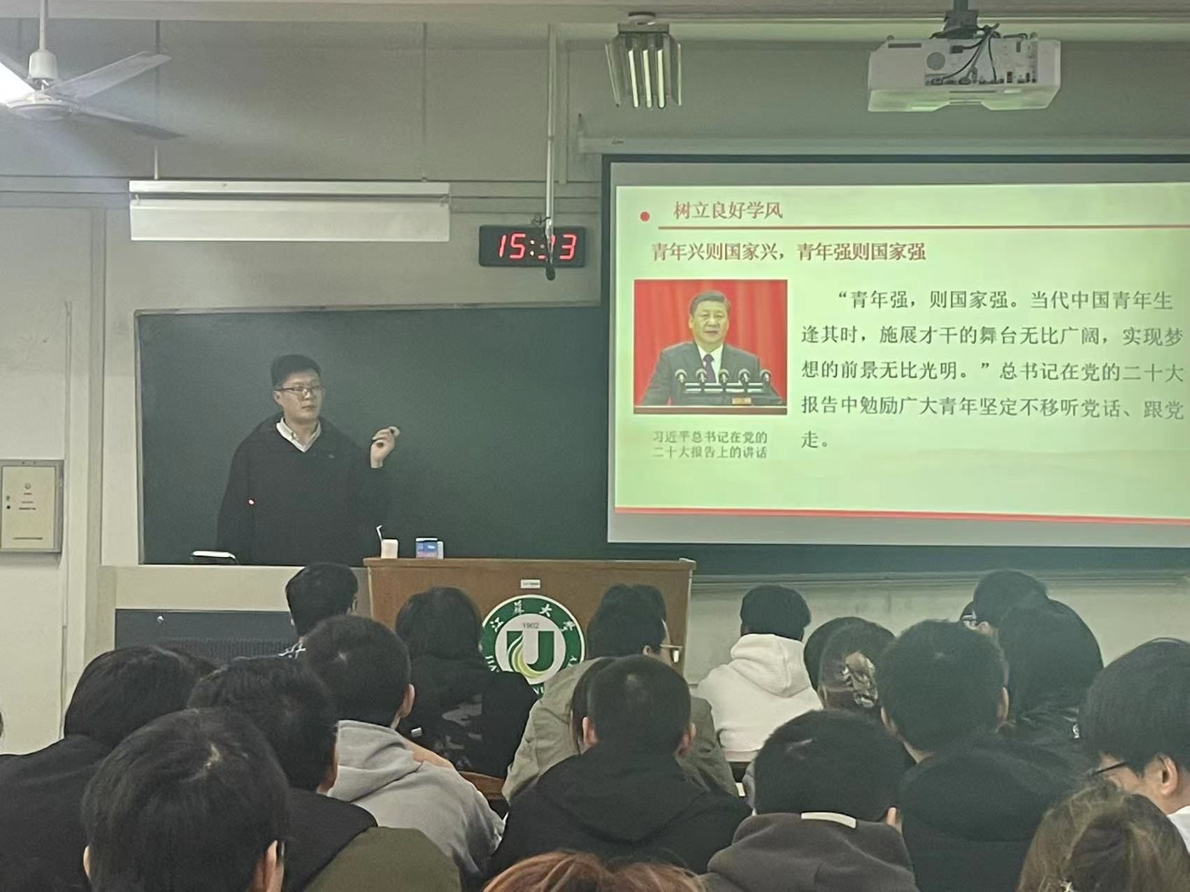 班会上,通过观看最美大学生、大学生年度人物等先进事迹视频,邀请本专业学习、科研成绩突出的同学,开展朋辈交流,为大家分享学习经验,通过选树典型、榜样,引导同学们坚定理想信念,争当德智体美劳全面发展的新时代好青年。辅导员来桂玉就同学们提出的创新创业实践学分认定、成长困感及升学等问题进行指导和交流,引导同学们深刻领会青年的初心与使命、责任与担当。庄蕾副书记强调,学院师生深入学习贯彻党的二十大精神,聚焦学风建设,促进同学们全面发展,学生干部和先进积极分子更应该做好表率,把学习贯彻党的二十大精神切实转化为刻苦学习的动力,努力成为国家和社会的有用之才,为实现中国式现代化建设贡献力量。