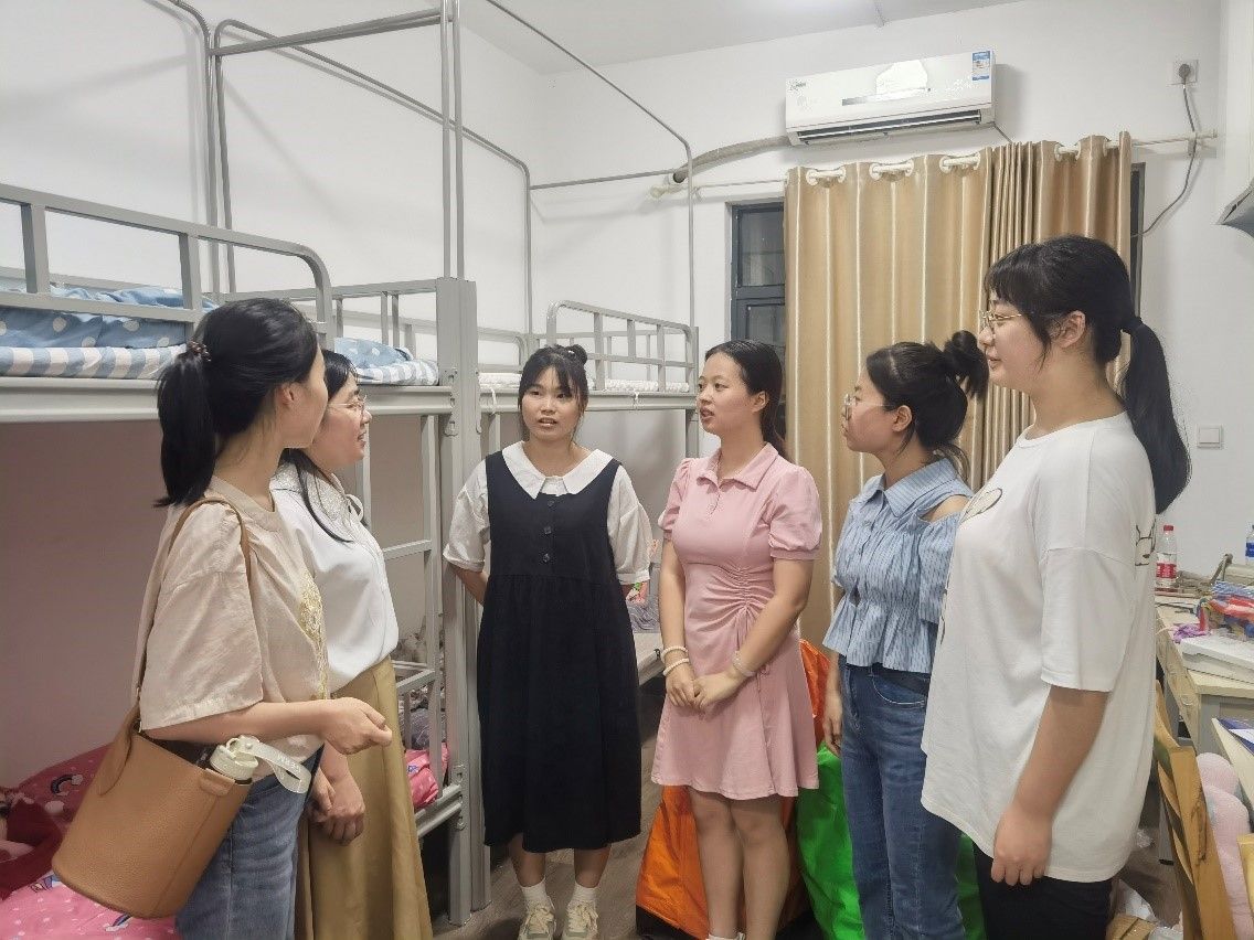 9月10日,365公司领导、辅导员以及行政教师前往学生宿舍看望2023级新生。