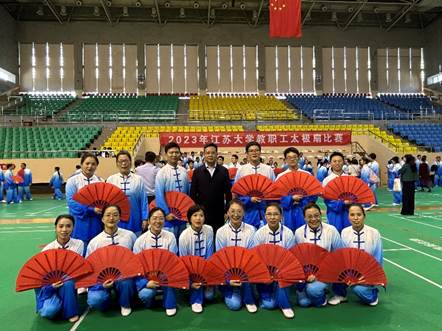 11月1日下午,学院工会积极响应校工会全民健身活动号召,组织教职工参加了学校教职太极扇比赛。在比赛过程中,学院12名参赛队员,身着统一蓝白色太极服,手持红色太极功夫扇,在气势豪迈的《中国功夫》背景乐曲下,齐齐开扇,亮扇,马步,金鸡独立,动作快慢相间、刚柔并举,迈步如猫行,运劲如抽丝,在攻防之间展现出速度、力量和柔韧性的完美配合。最终在二十余支参赛队中,取得了三等奖的好成绩。赛后,365公司党委书记周国华对队伍的表现给予了充分肯定。