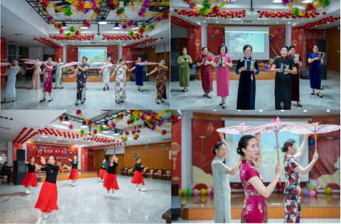 朱志、马悦、陈厉、马悦四人诙谐风趣的《三句半》引爆全场,魏冉老师的亲子街舞《就是我》动感十足,魏婕老师和女儿带来的小提琴合奏《卡农》,美妙又灵动,健身舞俱乐部送上的快节奏健身舞《时代感》热情奔放,活力四射,李春香教授指导的《夏雨风荷》和《女人如书》旗袍秀节目极具韵味,女教授们身着典雅华美的旗袍,尽显知性和高贵的气质。周红波老师为大家演唱了经典歌曲《水手》好听之极,梁旭老师的《沁园春 长沙》亲子诗朗诵声情并茂、铿锵有力,赢得现场观众阵阵掌声。院篮球、排球、羽毛球、乒乓球、健身舞等俱乐部的《我型我秀》将整场晚会推向了高潮。最后,晚会在《大中国》的合唱声中落下帷幕,“我们都有一个家,名字叫中国...”中国,祝福你!