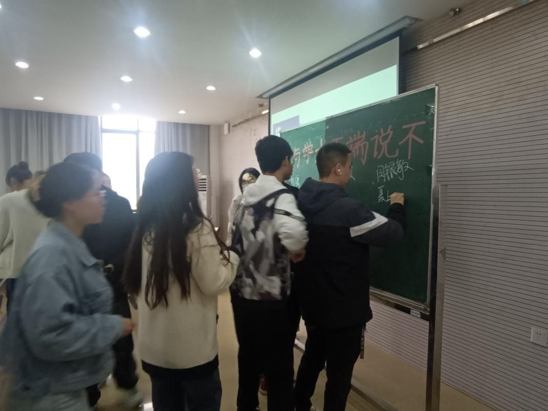 在交流互动环节,窦雨琴同学对同学们的困惑给予耐心的解答,并与同学们互相勉励。同学们纷纷表示对接下来的科研学习有了更清晰的规划。活动最后,大家共同倡议与学术不端说“不”,并在签名墙上签下自己的名字,同学们满怀信心,表示能够坚实有力地走好科研路上的每一步。