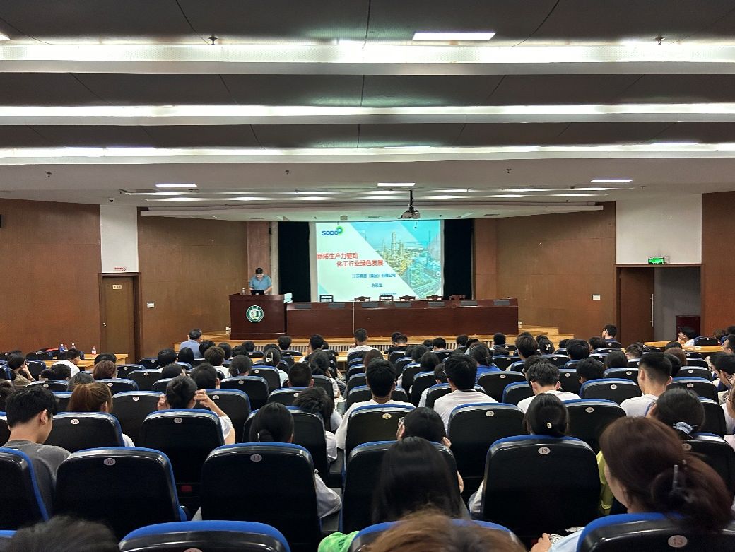 朱老师以《新质生产力驱动化工行业绿色发展》为题,为广大新生介绍了江苏索普集团如何因地制宜发展新质生产力、如何以科技创新推动产业创新以及深化产教融合、加强创新人才培养等方面的知识,重点介绍了化学化工专业学生在校应重点学习掌握的理论知识和实践技能。朱老师寄语同学们:“作为新时代的化工青年,应该勇于肩负起时代重任,为国家化学化工行业的发展贡献出自己的一份力量。”