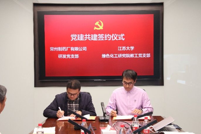 江苏大学绿色化学与化工研究院教工党支部与常州制药厂研发党支部共同签署了党建共建协议,标志着双方在党建工作上的合作迈上了新的台阶。