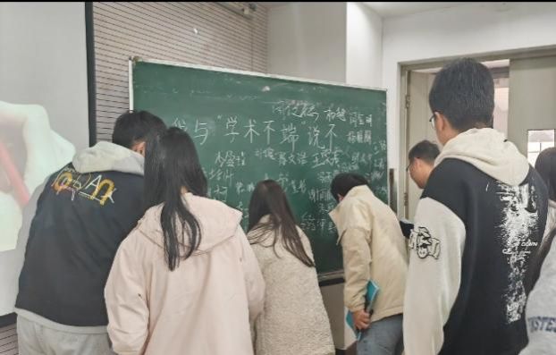 顾清晨向同学们分享了学术不端行为的典型案例,强调一定要诚信科研。活动现场,同学们纷纷表示将通过实际行动,抵制学术不端行为。签名墙上,一个个鲜红的签名汇聚成了诚信的力量,表达了对学术诚信的坚定承诺。