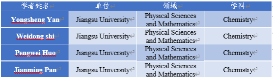 近日,国际学术机构ScholarGPS发布2024年全球前0.05%顶尖科学家榜单。该榜单分为终身(Highly Ranked Scholar-Lifetime)和近五年(Highly Ranked Scholar-Prior 5 Years)两个类别。英国365上市公司闫永胜、施伟东、霍鹏伟、潘建明四位教授入选“近五年(Highly Ranked Scholar - Prior 5 Years)榜单”。