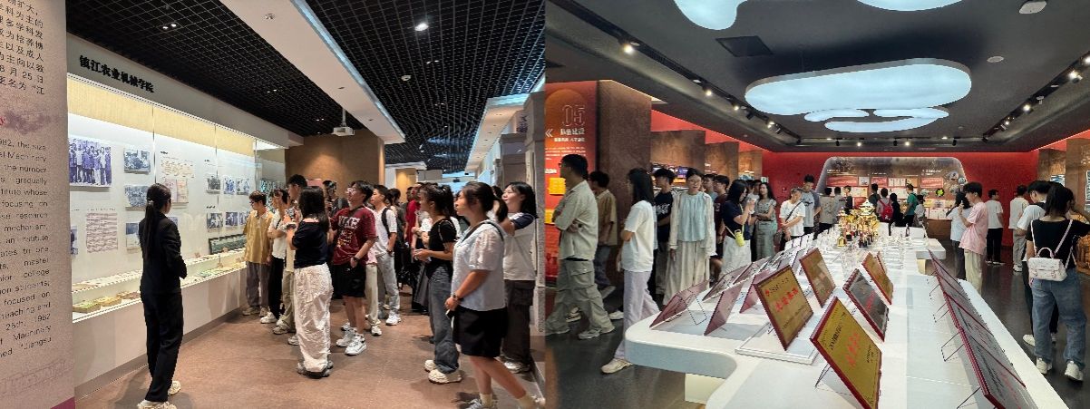 在讲解员的带领下,同学们依次参观了各个展区。通过历史图片、实物展品和档案资料,大家详细了解了学校的发展历程和办学成就。讲解过程中,同学们认真聆听、积极交流,逐步感受到身为“江大人”的归属感和责任感。