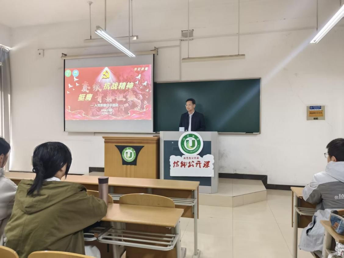 周国华以“九三阅兵”为切入点,带领同学们回顾中国人民抗日战争的壮阔历程,深入阐释伟大抗战精神的深刻内涵和时代价值,激励青年学子在新时代砥砺初心、勇担使命。他围绕“观盛典以明大势:深刻理解阅兵的重要意义”、“溯征程而悟真谛:牢记党的领导”、“擎旗帜以铸忠魂:弘扬伟大抗战精神”、“担使命而展作为:勇做时代先锋”四个篇章展开讲述,系统解读了以爱国情怀、民族气节、英雄气概、必胜信念为核心的抗战精神,强调这是新时代青年成长成才的精神动力。立足新征程,他对入党积极分子提出三点要求:一是要铭记历史,担当守护和平之责;二是要坚定理想信念,把准政治方向;三是要弘扬抗战精神,在学习与工作中发挥先锋模范作用。