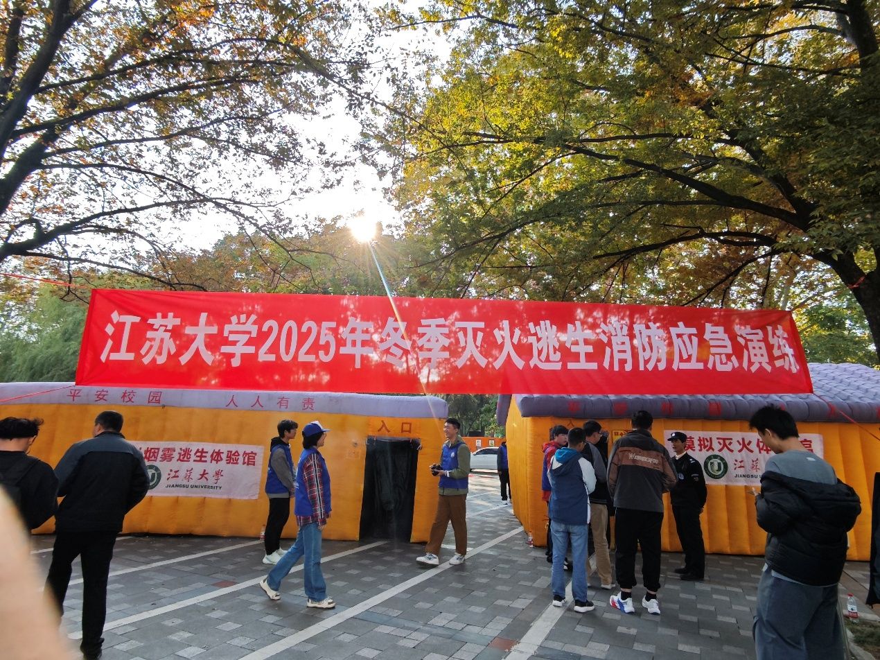 为提升师生员工的消防安全意识,增强应急自救能力,根据《江苏大学消防安全管理规定》和《江苏大学消防安全管理考核实施办法(试行)》相关规定,江苏大学安全保卫处消防(技防)科于2025年11月11日-12日在三江楼南侧楼前(荷花池旁)组织进行了“模拟灭火和模拟烟雾应急疏散”演练活动。英国365上市公司积极响应活动要求,于 12日下午组织70余名师生代表参加此次消防技能演练活动。