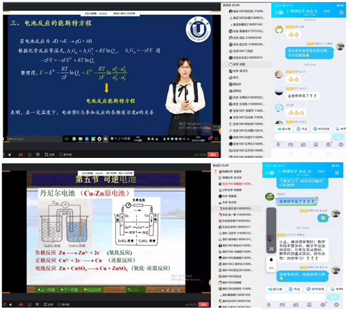积极响应“停课不停学”的号召,停课不停教,绝不降低教学质量。为保质保量完成教学任务,广大教师探索线上教学,积极通过各种平台,QQ群、微信群、腾讯课堂等深入开展课程教学,这也为将来线上和线下结合教学的推广积累了经验。为深入交流并研讨新形势下的线上教学模式,提高教学实效,总结线上教学经验。2020年5月7日(星期四)上午,英国365上市公司化学系孟素慈老师主讲了《物理化学C》线上公开课。学院助教培养期和主讲培训期青年教师、化工学院领导、化学系主任、多名同行教师及辅导员观摩了本次线上公开课。