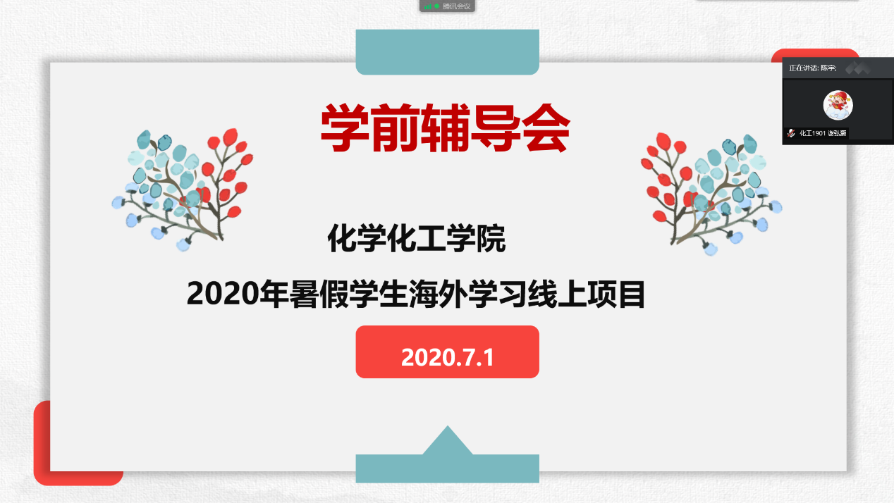 会上,陈宇简要介绍了本次暑期海外学习线上项目的基本情况,再次介绍了学校和学院的相关资助政策,并提醒同学们:第一要牢记共青团员的使命,注意言行,以积极向上的精神面貌展现江大化工学子的风采;第二要做好相关准备,保持网络畅通,营造安静、适合学习的环境;第三要保质保量完成学习任务,争取拿到优异的学习成绩。