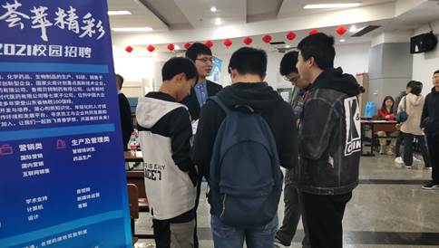 此次招聘会吸引了来自上海、南京、镇江等50家用人单位来校招聘,涵盖化工、制药、环境、能源等行业领域,招聘岗位近800个,吸引了本科生、研究生近六百人参加。学院党委副书记庄蕾、就业辅导员陈宇、辅导员齐廉文到现场与用人单位沟通交流并对毕业生进行指导。